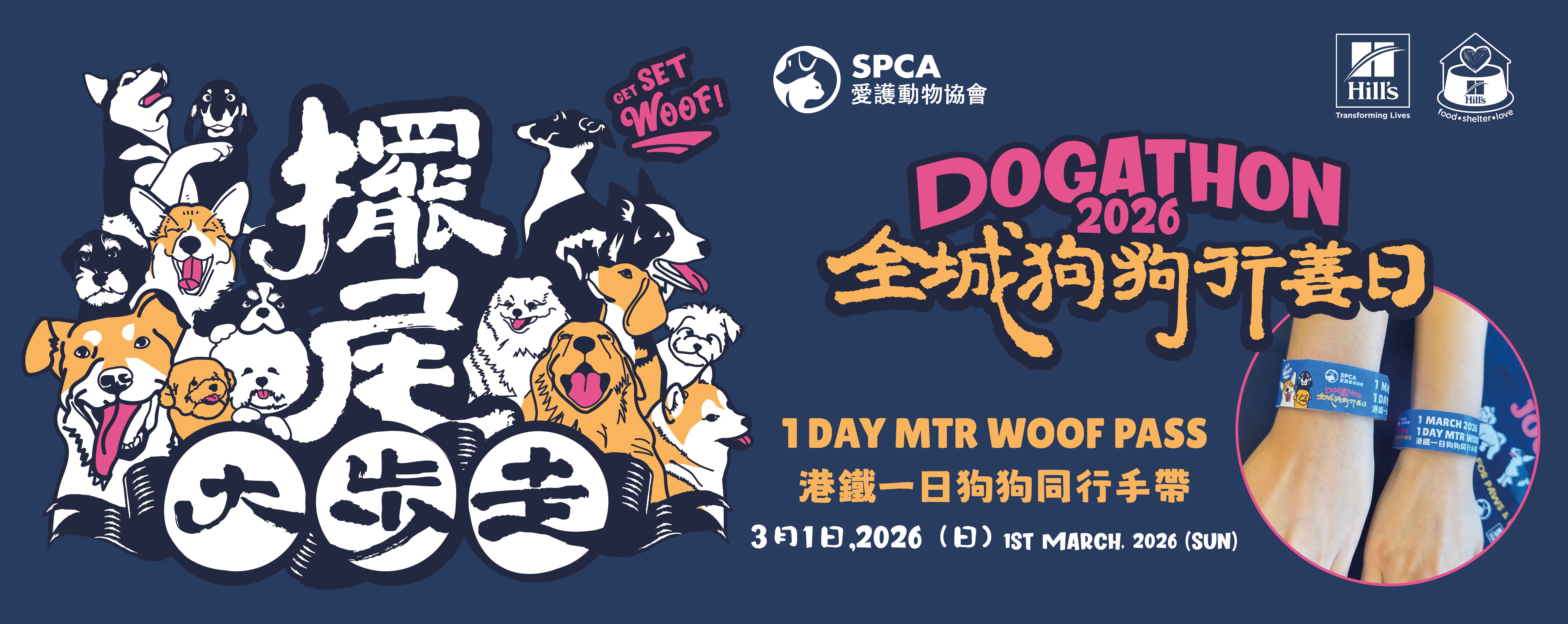 - 在2月20日或之前,捐款港幣90元即可獲得港鐵一日狗狗同行手帶(港鐵會將所有收益捐贈予愛協)
